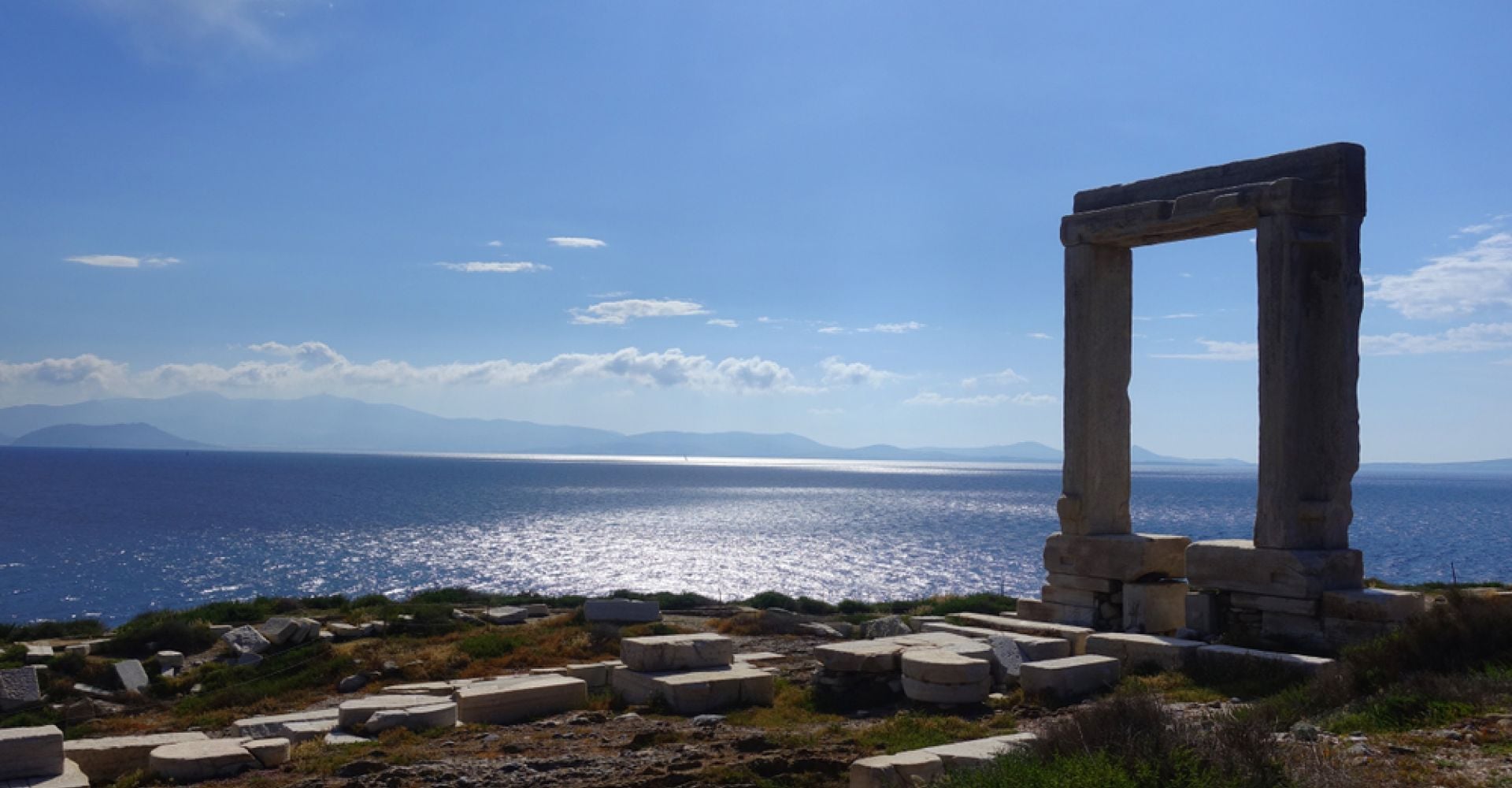 The Portara stands as a famous landmark of Naxos because it represents the unfinished marble entrance of the Temple of Apollo located near the harbor. The island exists as a mythological place which connects to the legendary tale of Ariadne and Dionysus giving to the island a mix of historical and mythological elements.